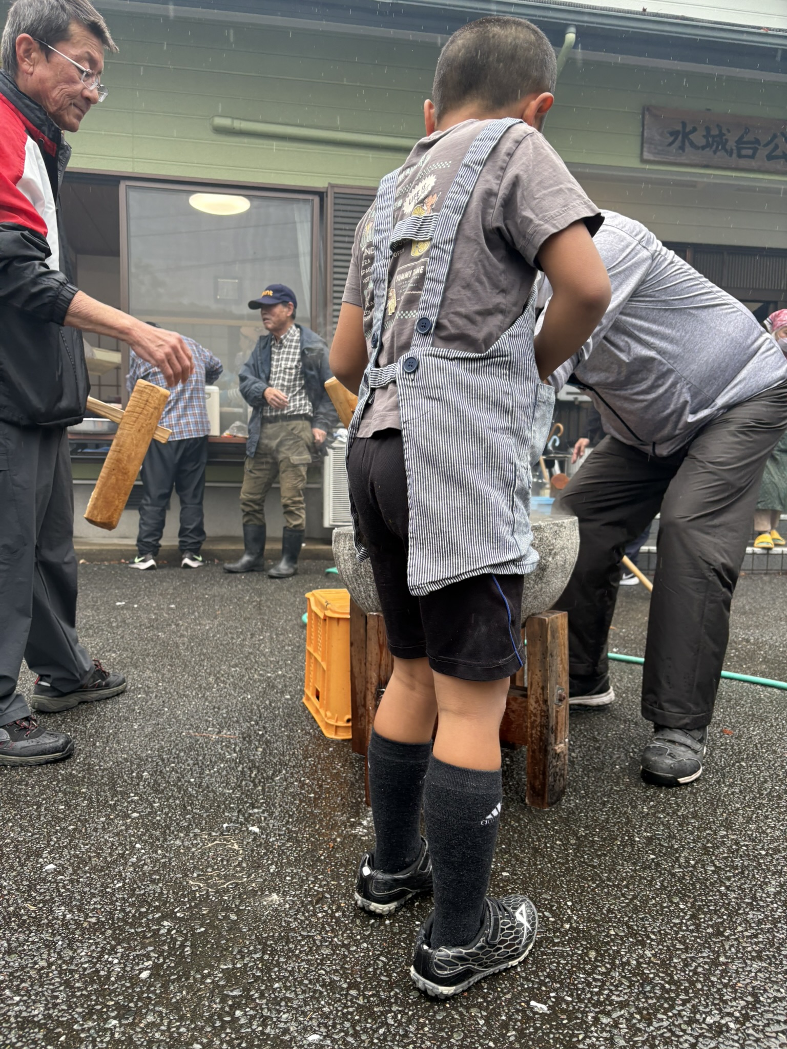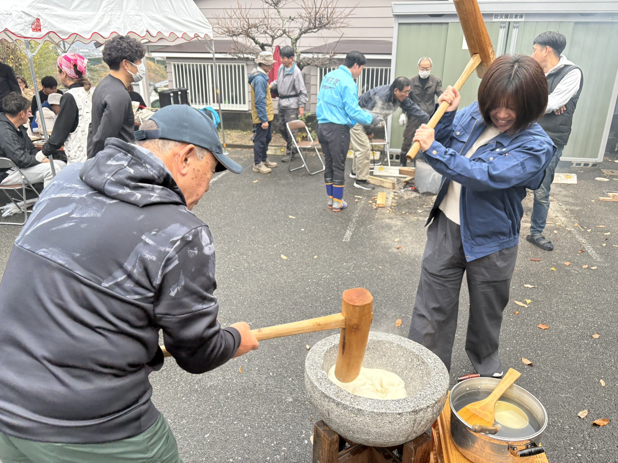 来賓の方々にも、もちつきに参加頂きましたが、その時のもちつきは大変に賑わいました。